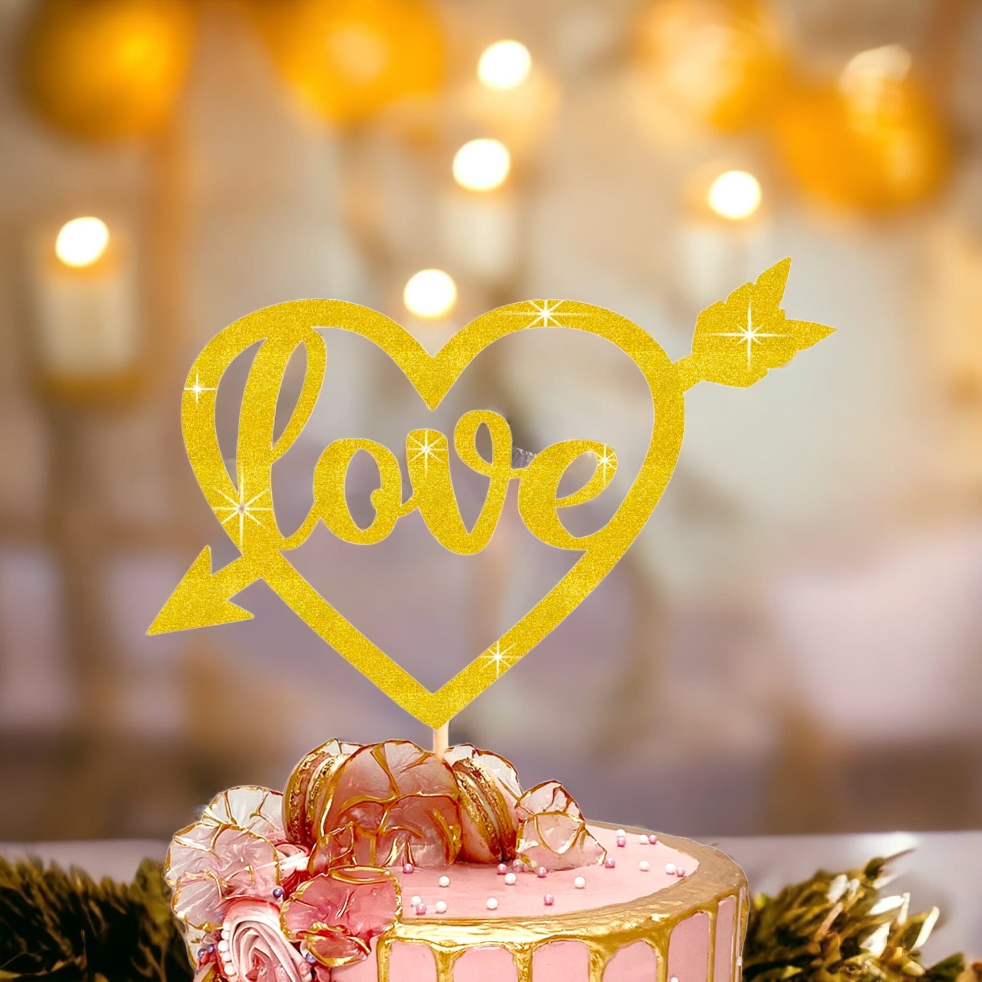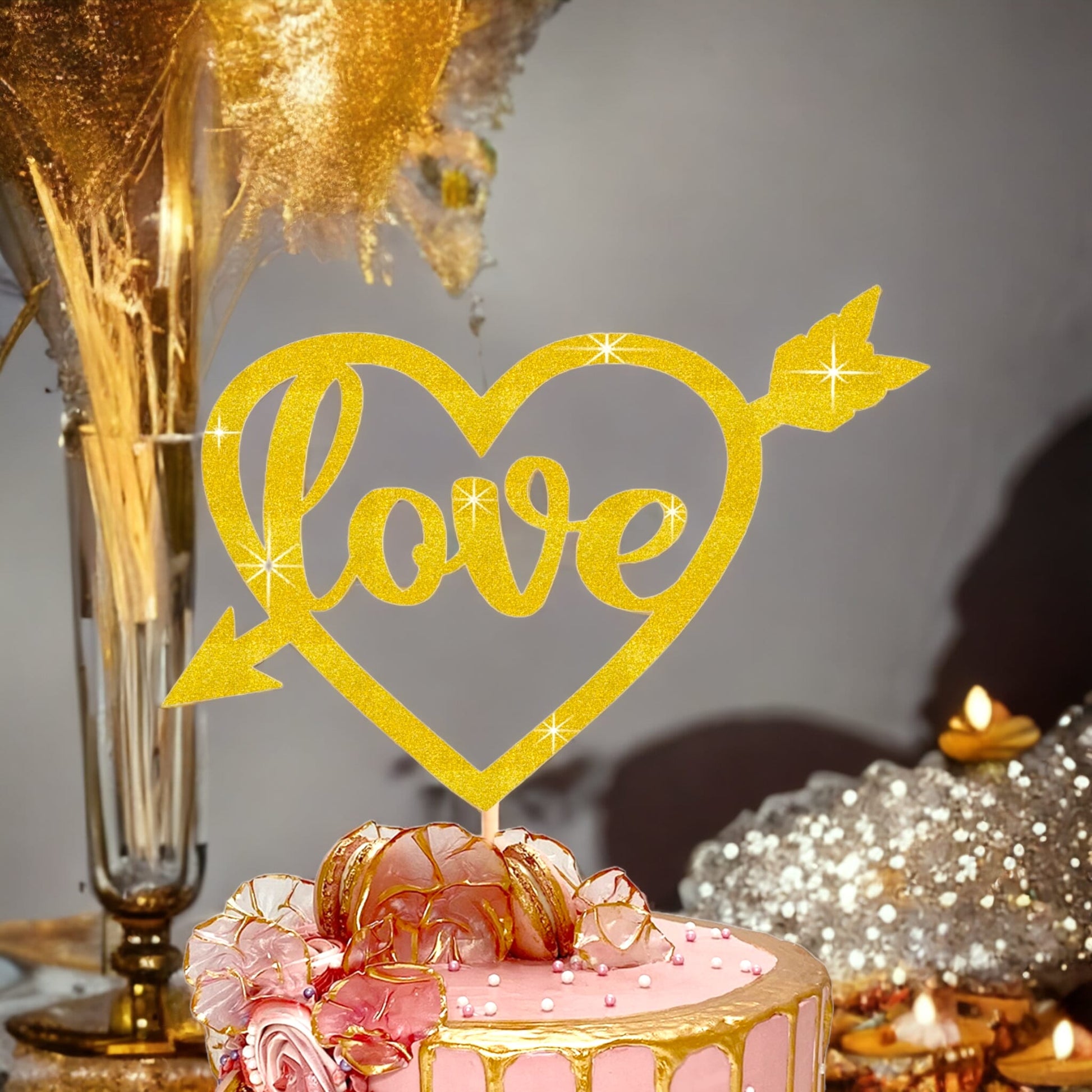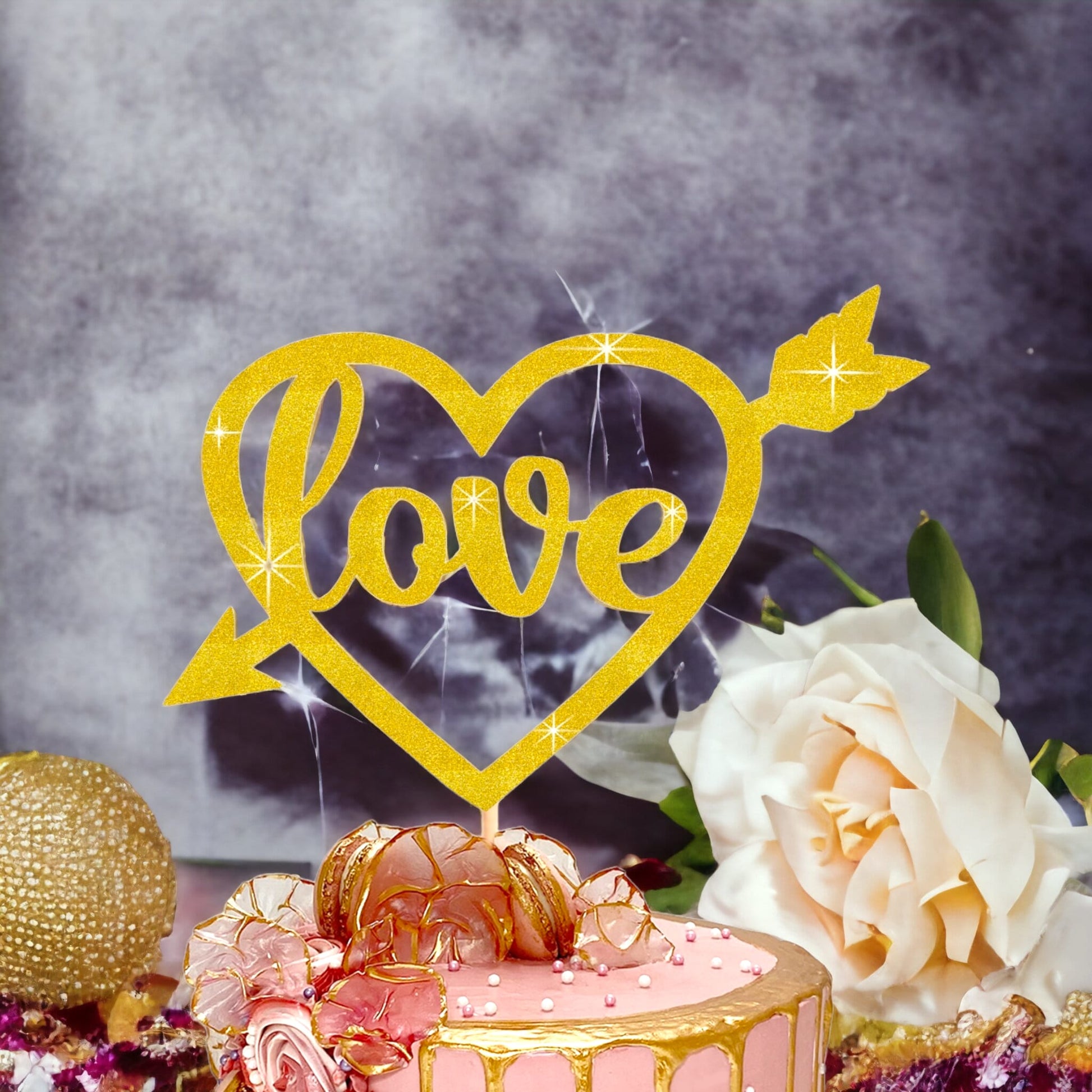Make your Valentine's Day celebration extra special with this beautiful Glitter Card cake topper. The topper measures approximately 6 inches wide, making it the perfect size for most cakes. It features a romantic design with hearts and a lovely font, adding a touch of love to your dessert. Made from high-quality double sided 350 gsm glitter cards. Comes with a bamboo stick and 2 glue dots. This topper is sturdy and easy to use - simply insert it into your cake and you're good to go! Whether you're celebrating with your sweetheart or simply looking to add some festive flair to your dessert, this cake topper is a must-have for any celebration.