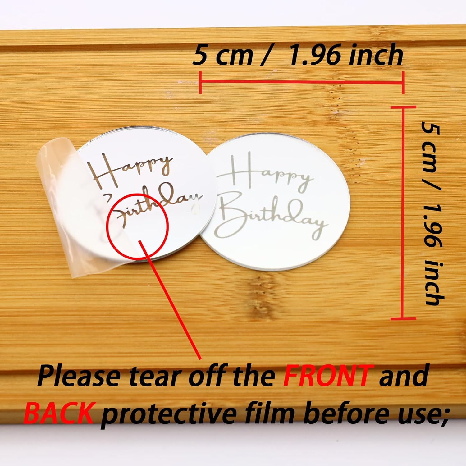 Birthday Cupcake Toppers - Engraved Discs - Birthday Party Cupcake Toppers - Cupcake Discs For Birthday - Acrylic Mirror Cake Toppers - Set of 6