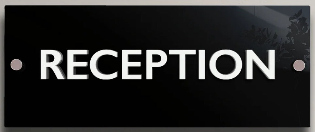 Professional Finish – Black glossy acrylic sign plate with 3D raised cut acrylic lettering.