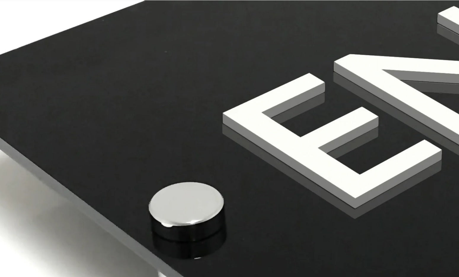 Signs are mechanically fixed with screws to your chosen wall or surface. Chrome stand-offs are included for a polished finish (screws not provided).
