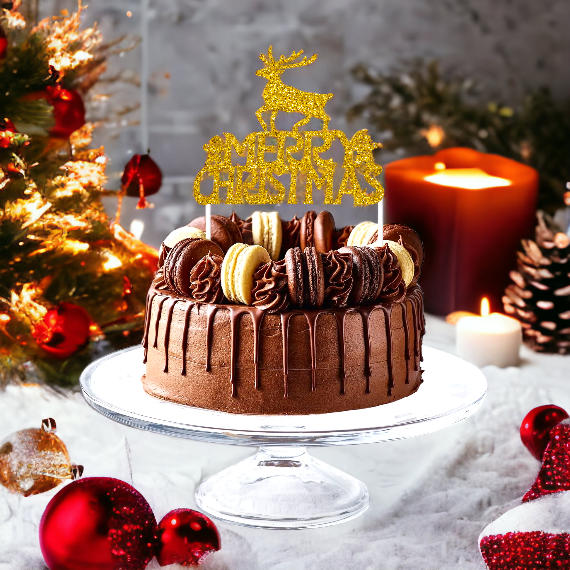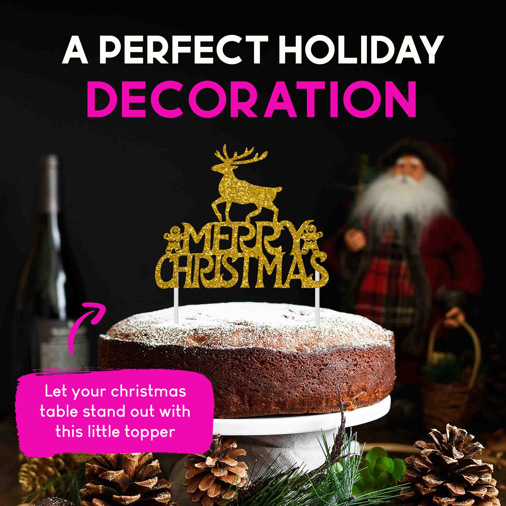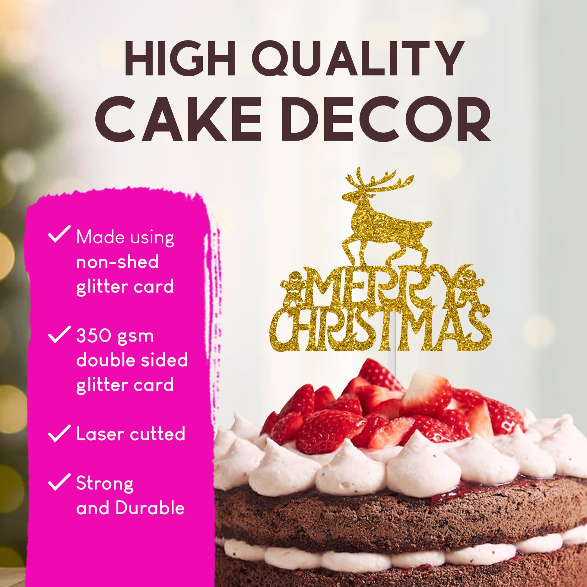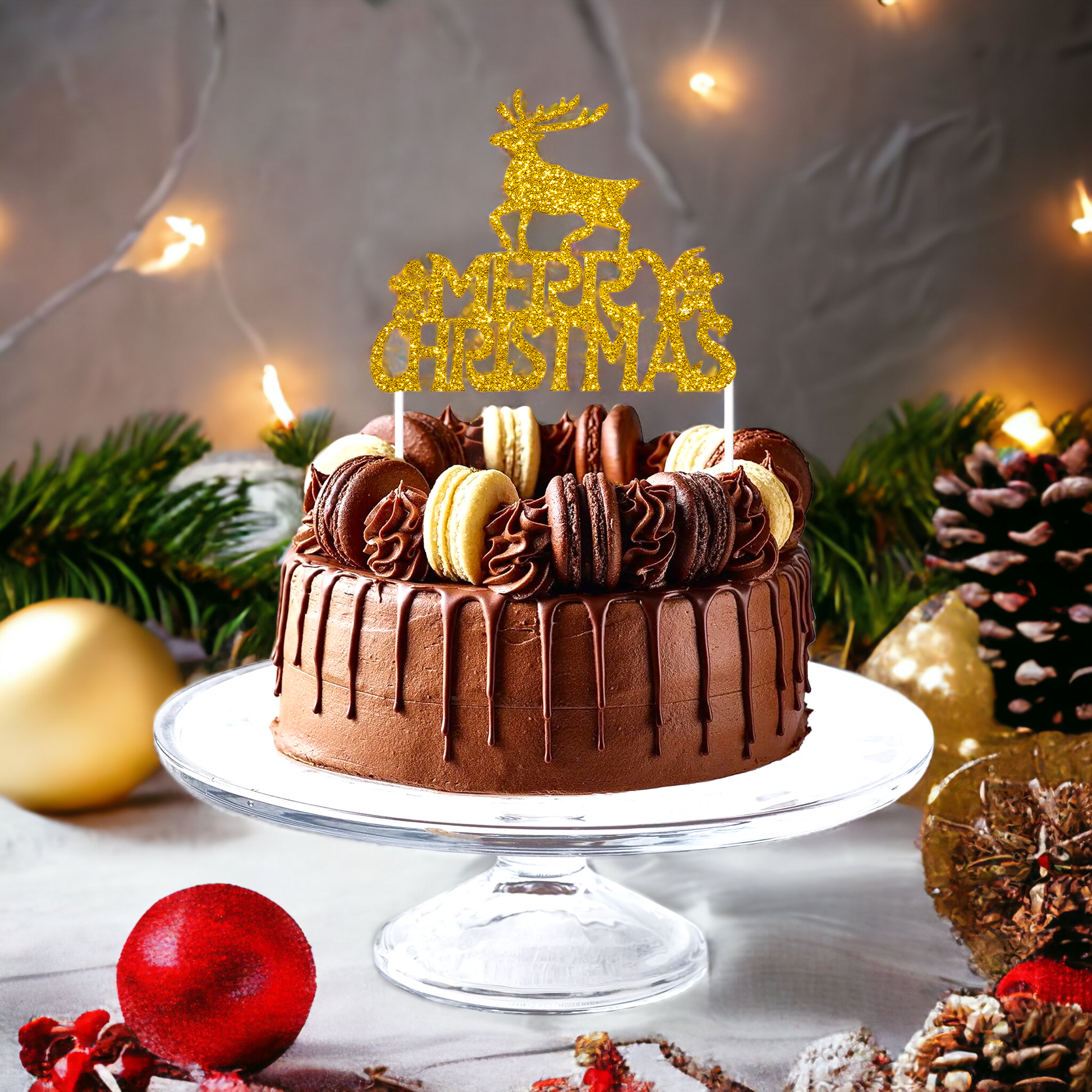 Christmas Cake Topper with reindeer Premium Glitter Card