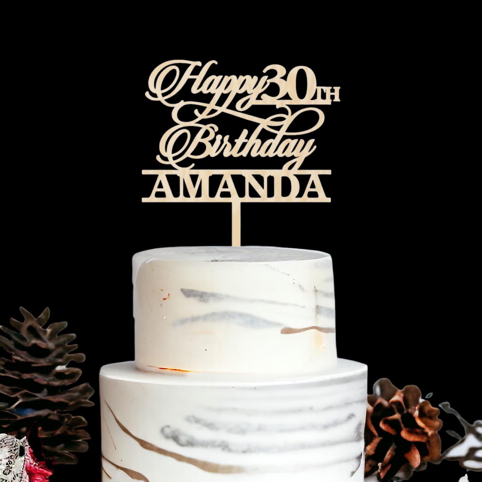 Custom Acrylic and Wooden Cake Toppers Happy Birthday Cake Topper, Personalized with Name, 50th Anniversary Cake Topper, 18th 30th 40th 60th