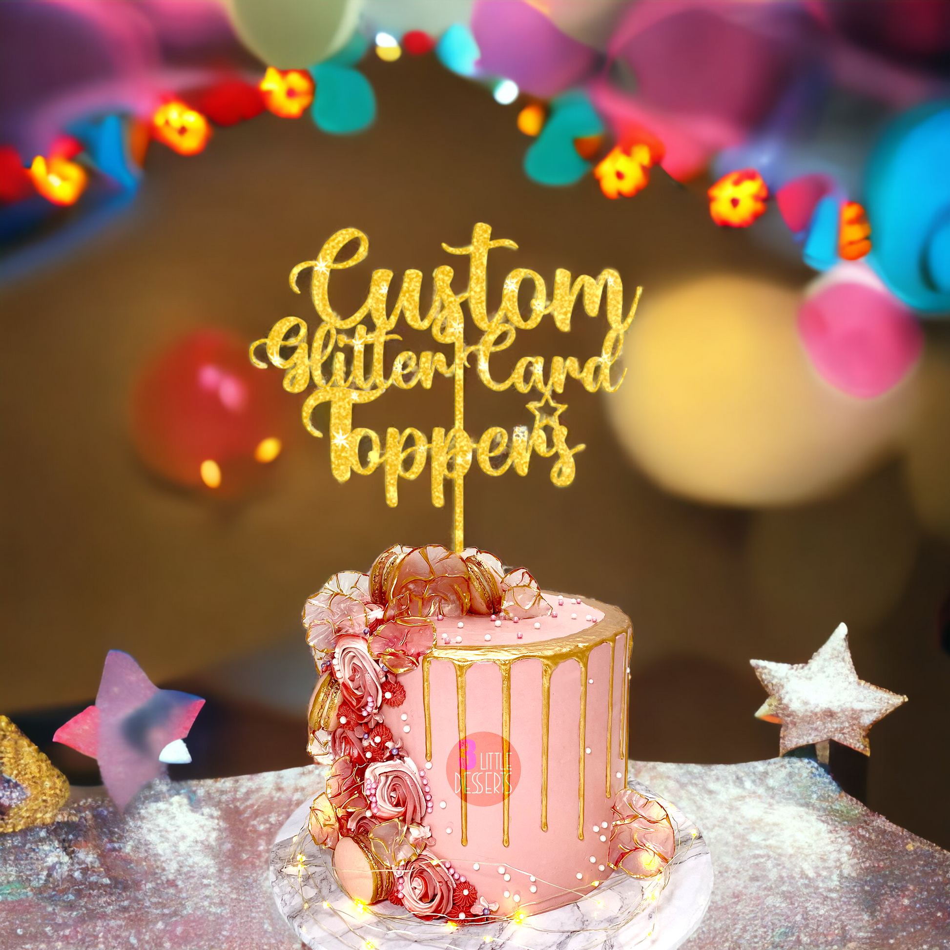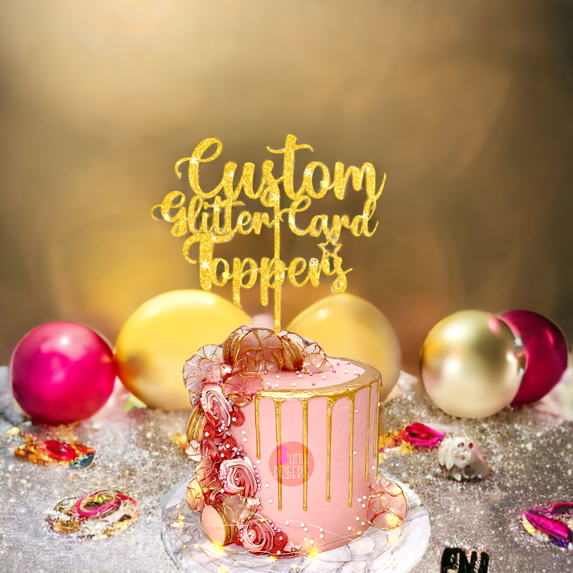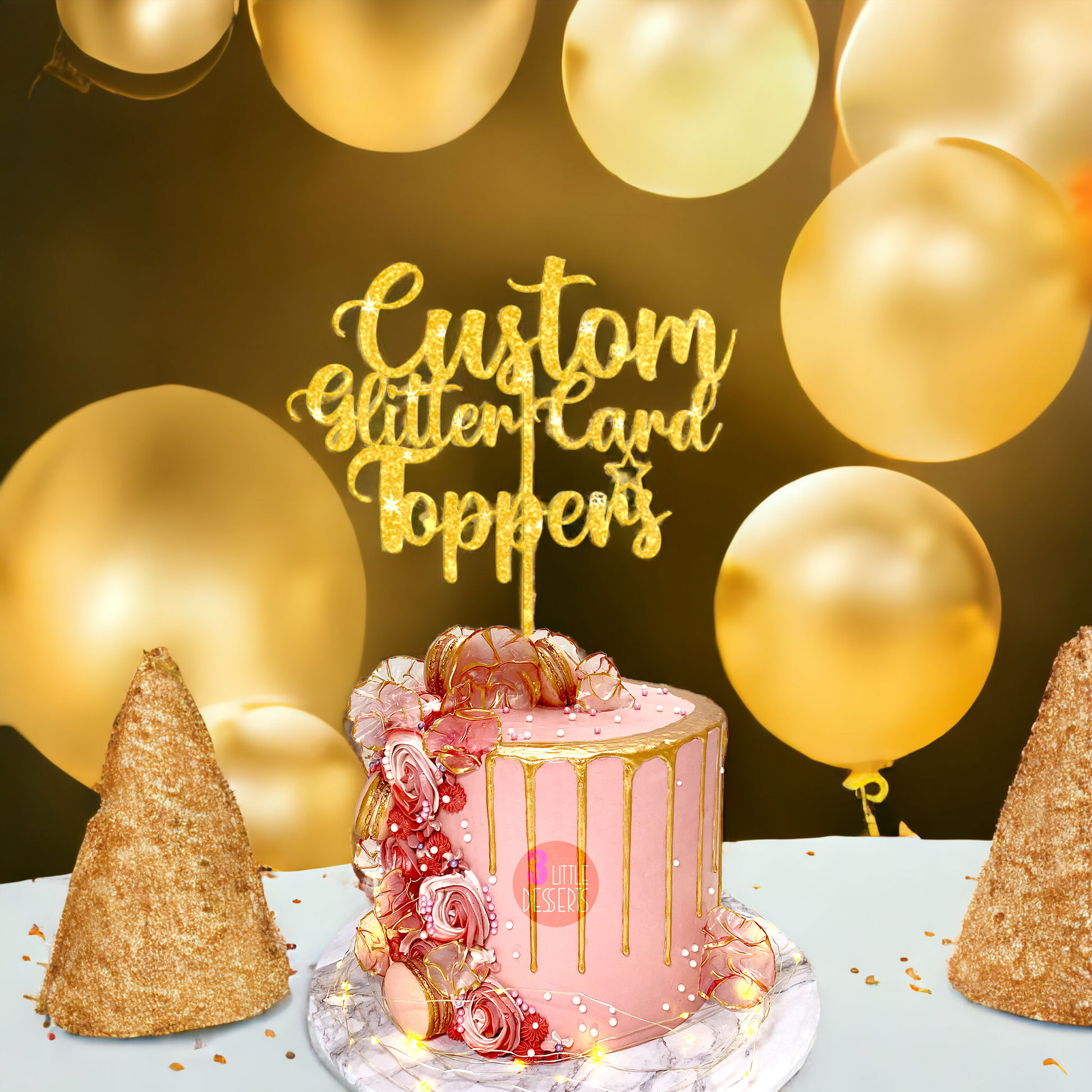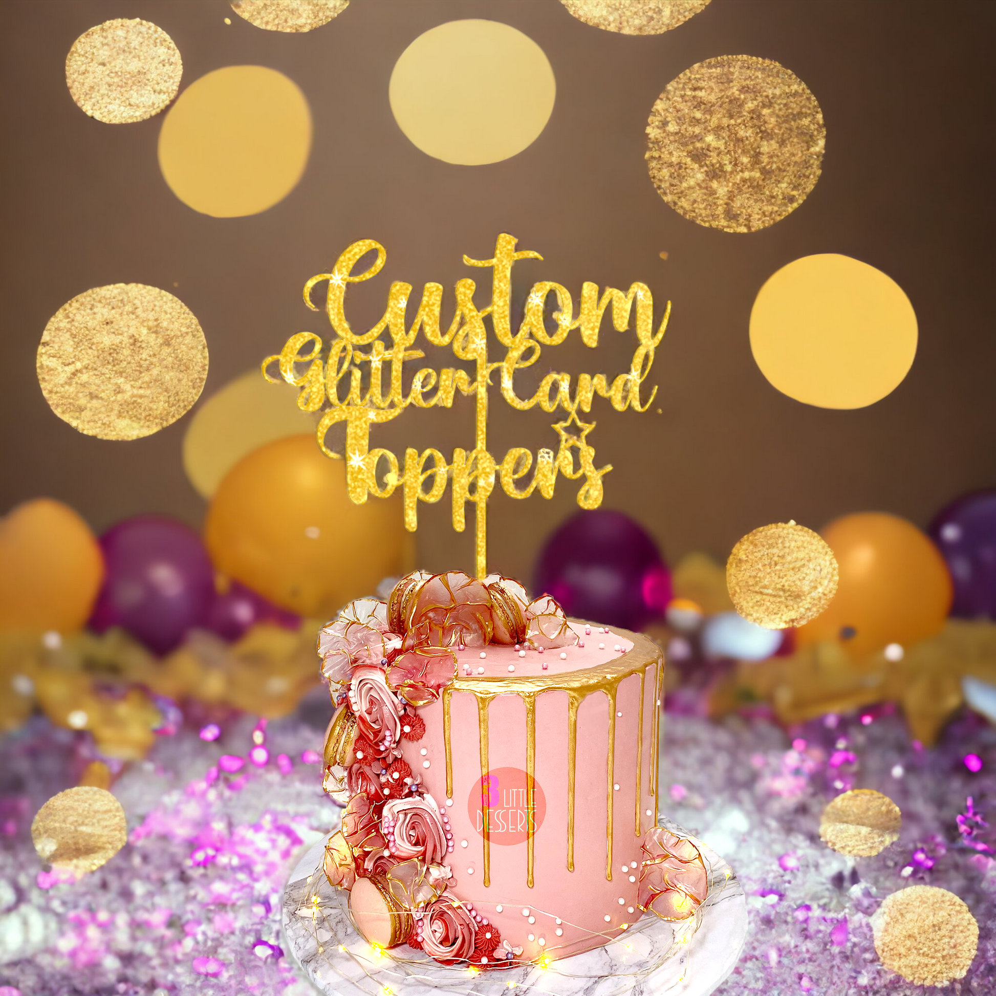 Custom Cake Topper Made From Premium Double Sided Glitter Card