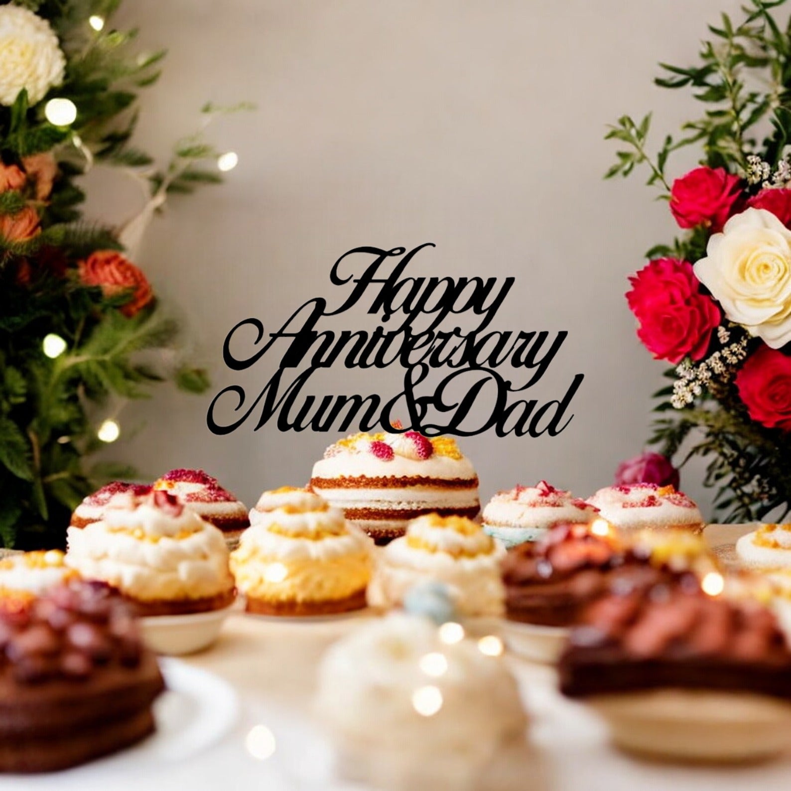 Custom Happy Anniversary Mum & Dad Cake Topper