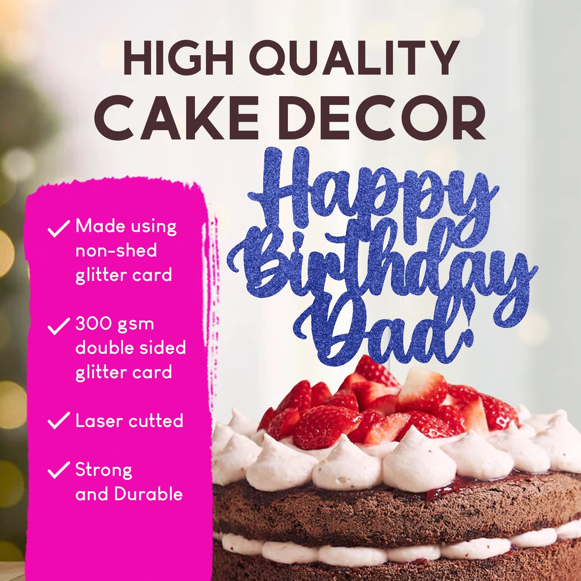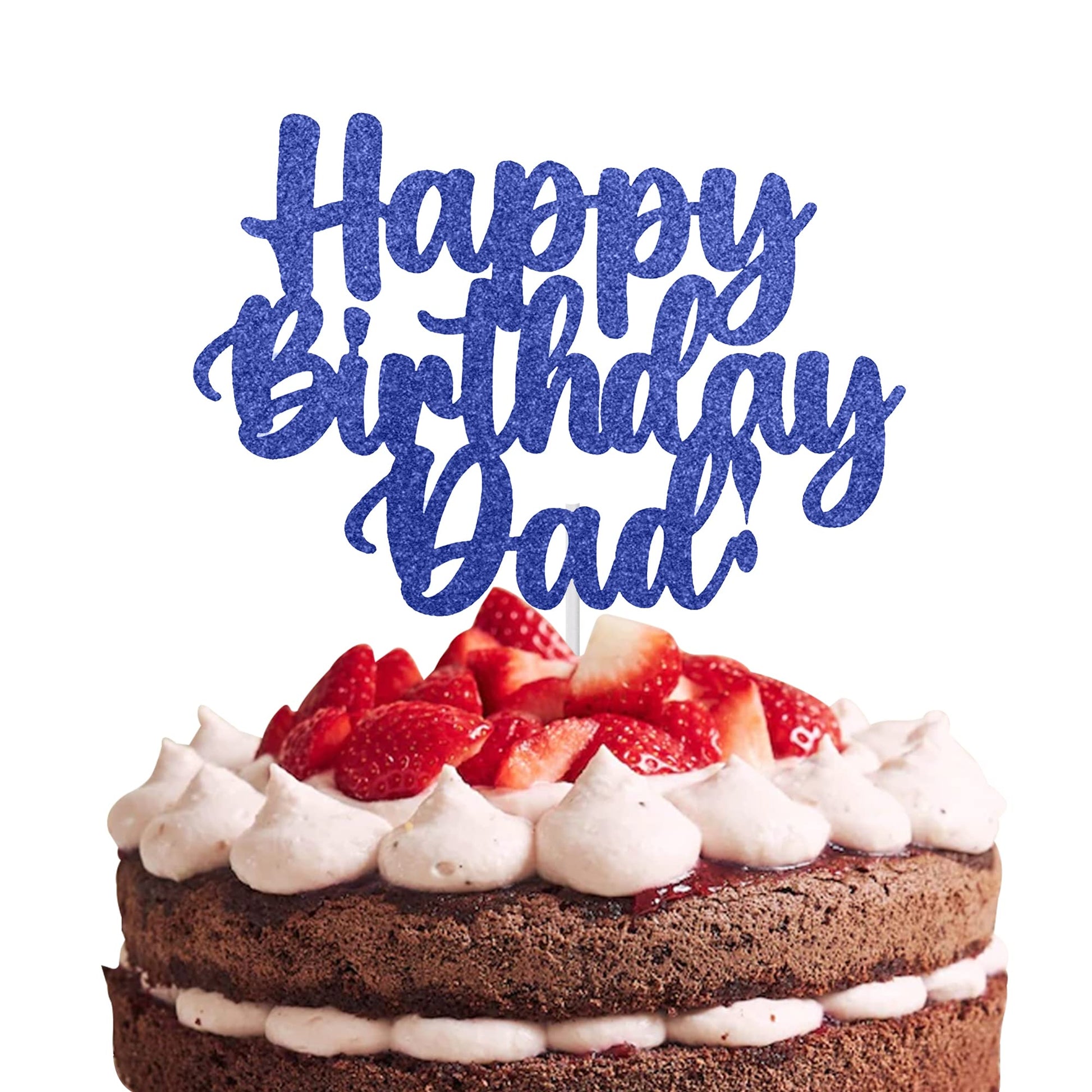 Happy Birthday Dad Cake Topper Glitter Cardstock Father's Brthday Toppers - (Happy Birthday Dad Tranquillity Blue)