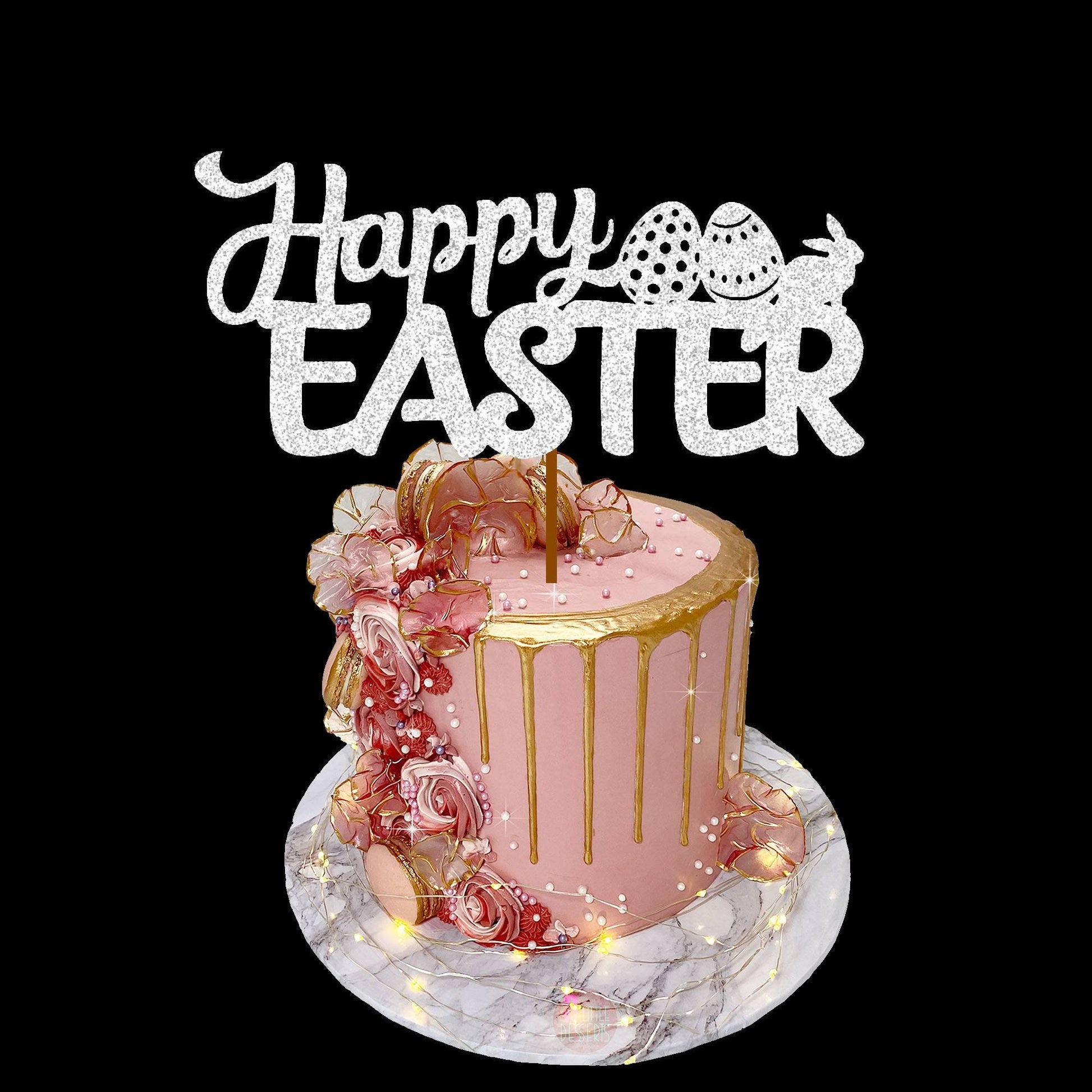 Happy Easter Cake Topper | Easter Eggs Cake Toppers | Bunny Rabbit Cakes | Easter Pic | Glitter Card stock | Gold Pink Silver White Cards