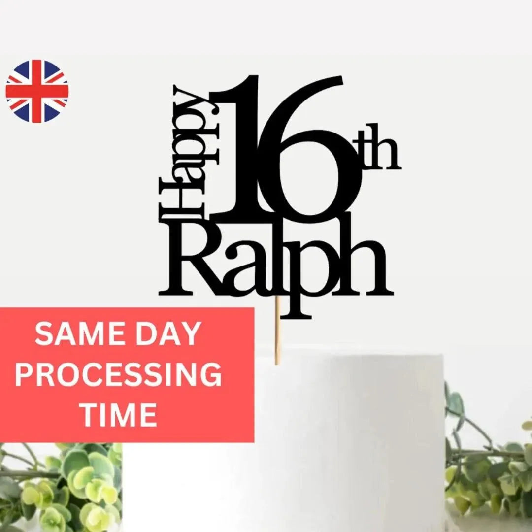 Happy 16th Birthday Cake Topper | Custom Personalised Cake Topper | 16th Birthday Party Supplies