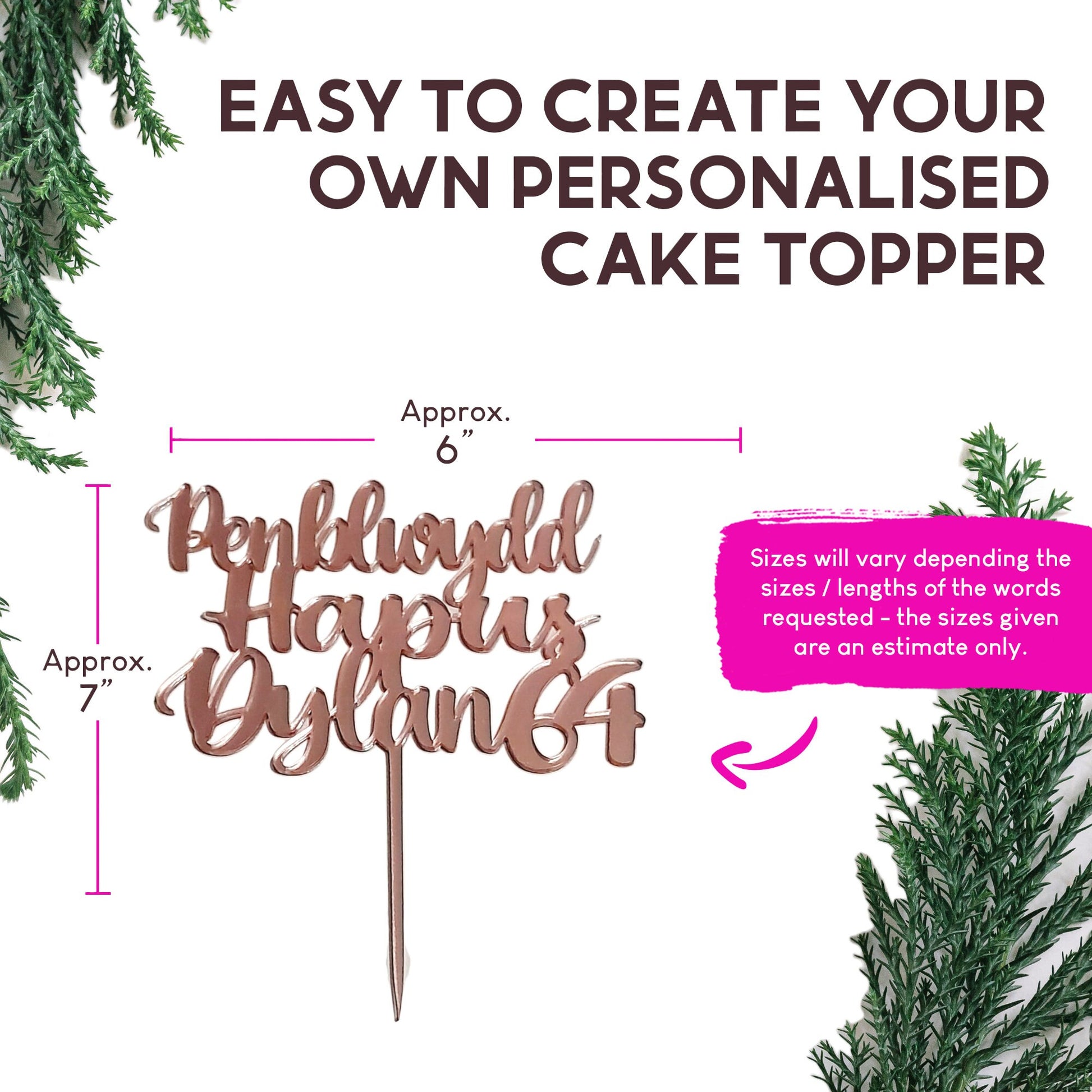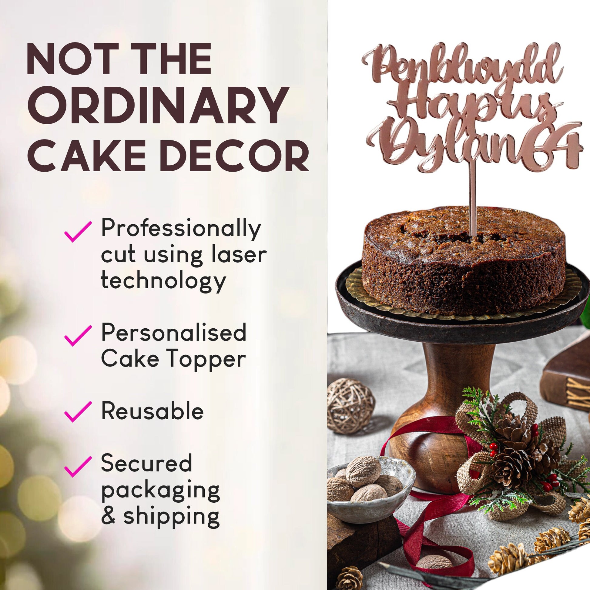 Personalized Welsh Birthday Cake Topper in 16 Colors - Custom Acrylic Decor