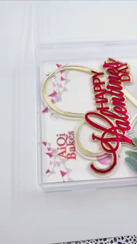 - 1 acrylic cake topper featuring an elegant 'Happy Valentine's Day' design (Finished).